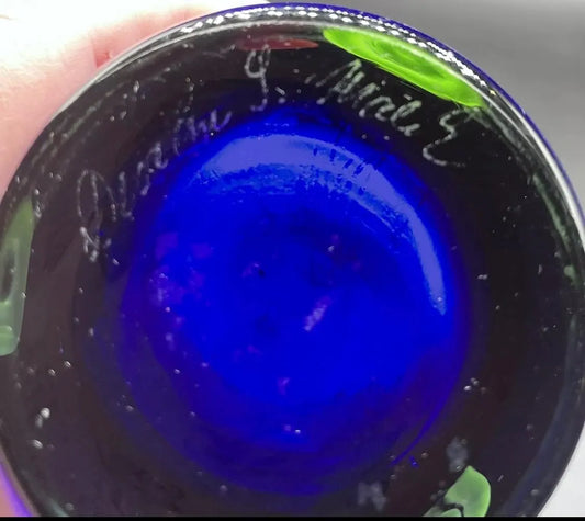 11.5” Czech Colbalt Hourglass Vase Signed S Malik by Barovier
